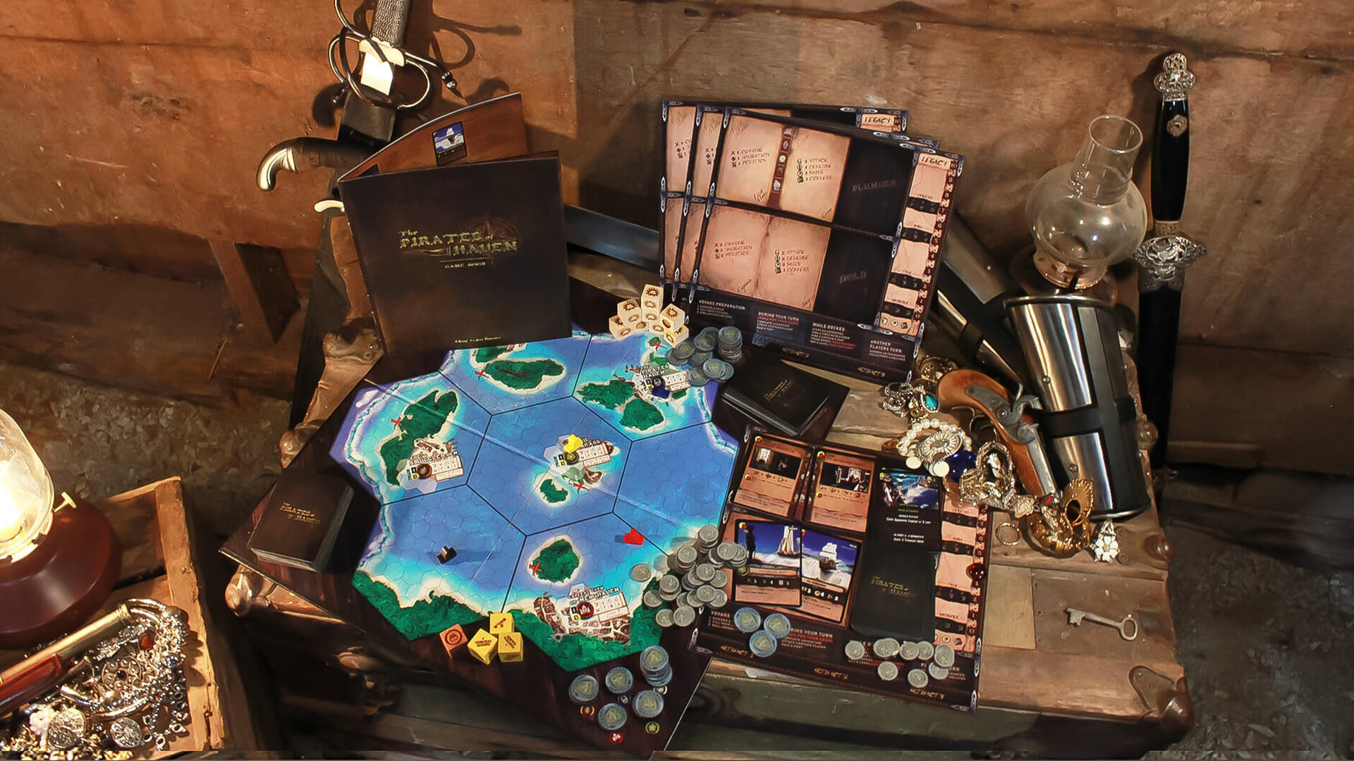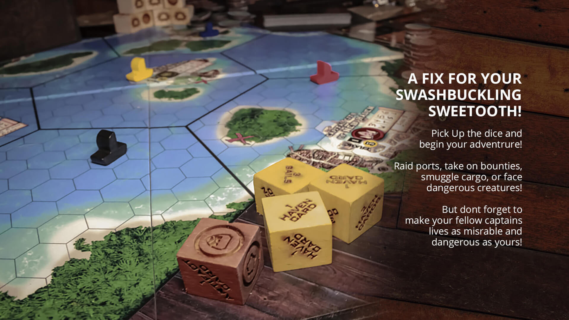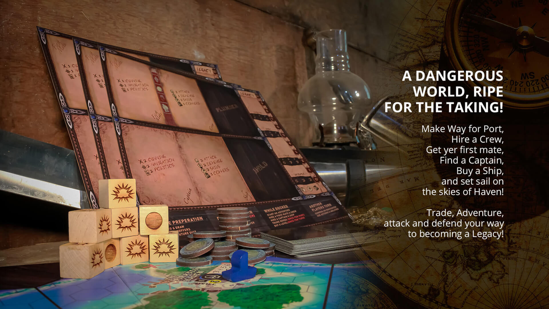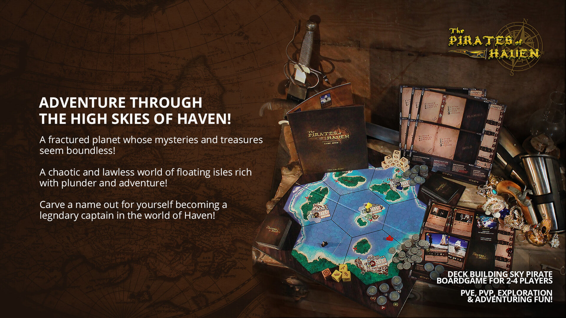 The Pirates Of Haven is A deckbuilding board game of adventure, skullduggery, and high-stakes airship battles. With PVP, PVE and Exploration set in the Skies of Haven!